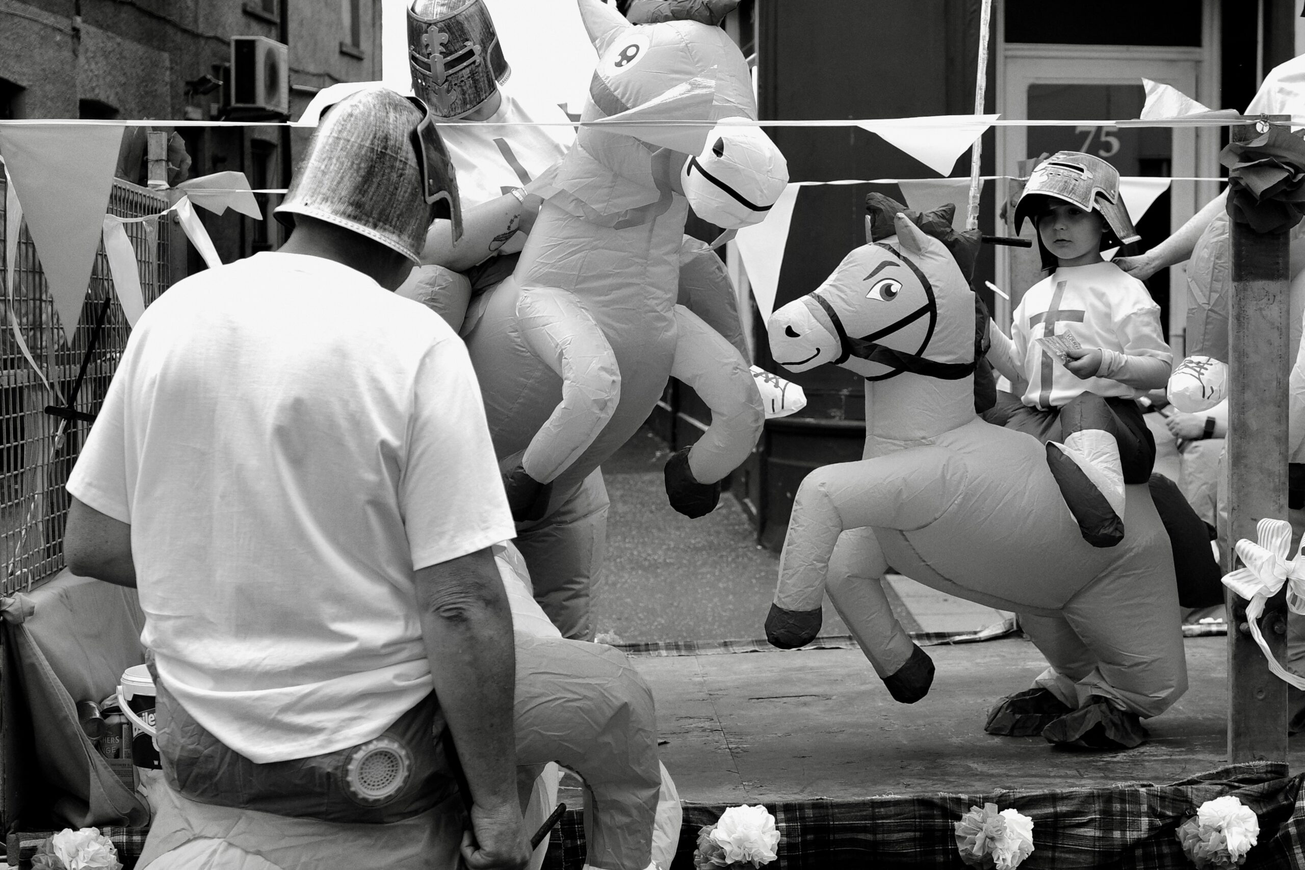 Perfect posture keeping his steed calm.